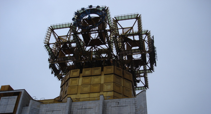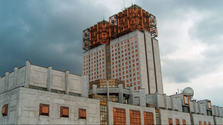 這棟樓是俄羅斯國(guó)家科學(xué)院,坐落在莫斯科,修了將近二十年,在1994年才完工。在頂部有玻璃與金屬所構(gòu)成的裝飾,當(dāng)?shù)厝硕及堰@個(gè)棟樓的頂部叫做“金色大腦”。