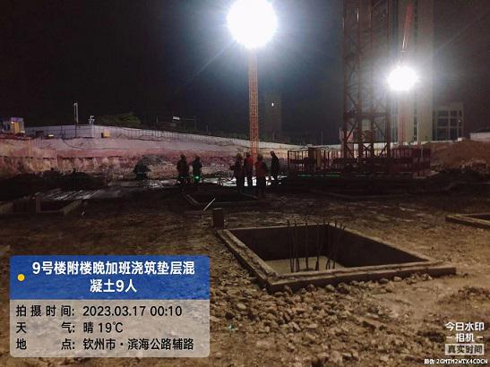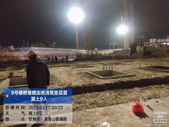 欽州市 · 濱海公路鋪路——9號(hào)樓附樓晚加班澆筑土面墊層人數(shù)9人